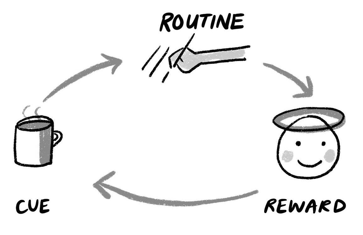 His cue to write - if coffee, then Scrivener - remains and the habit loop is unbroken.
